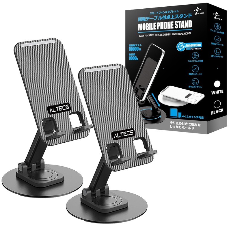 Altecs Rotating Desktop Smartphone Stand Tablet, Compatible with Many Models, Carbon Steel, Lightweight, Foldable, Set of 2