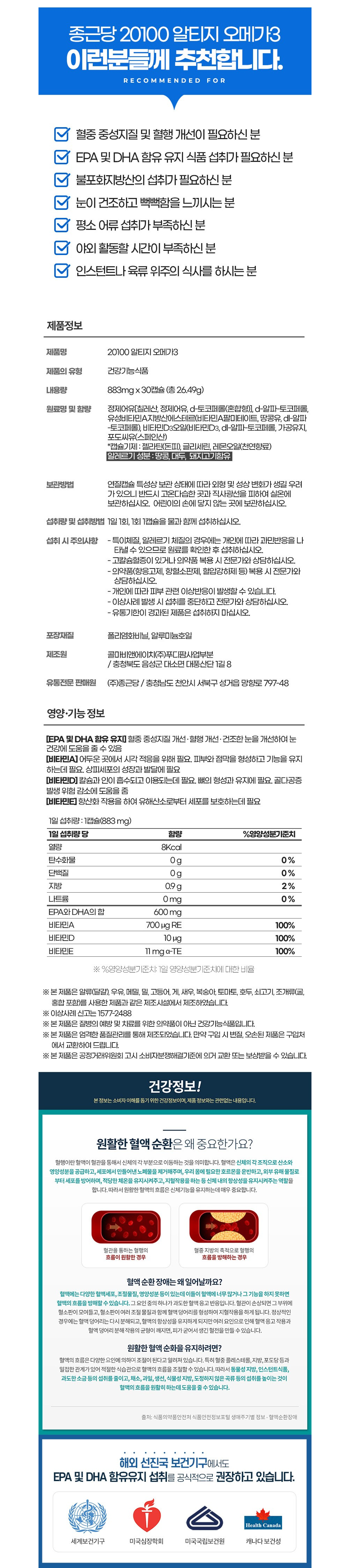 - 섭취량, 섭취방법 및 섭취 시 주의사항 및 부작용 가능성: 상세정보 별도표기