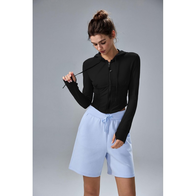 altiland Workout Corset Full Zip Jacket for Women - Hooded Athletic Running Yoga Crop Top(Black,S)