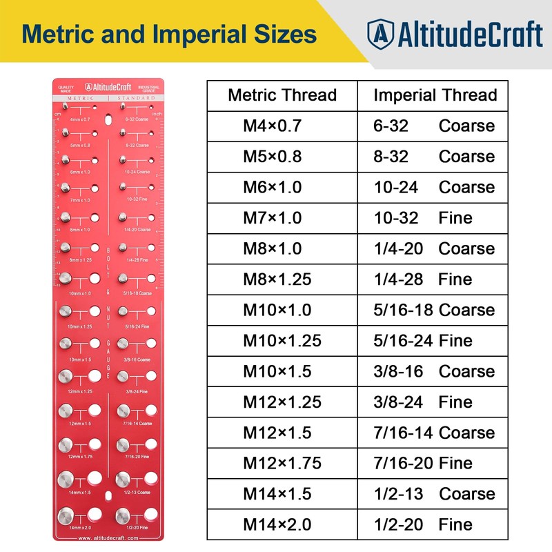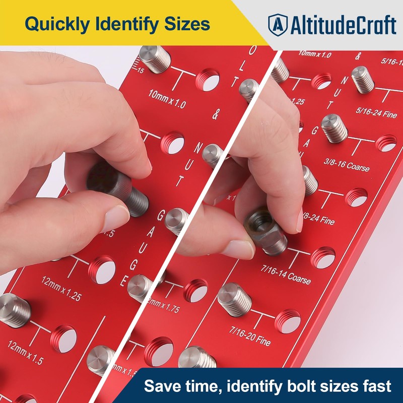 AltitudeCraft AltitudeCraft Thread Checker, Nut and Bolt Thread Checker, Bolt Size and Thread Gauge, Bolt and Nut Identifier Gauge, Bolt Gauge with Aluminum 6061 Board and SUS 304 Bolt