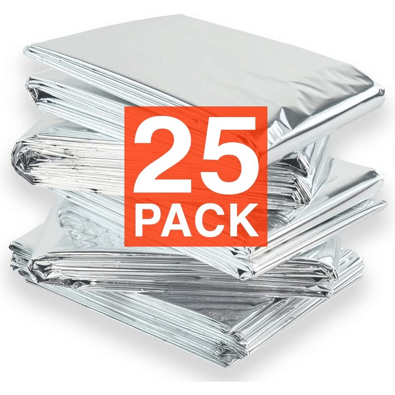 Altland 25 Pack of Emergency Blankets - Individually Packaged Silver Mylar Blankets