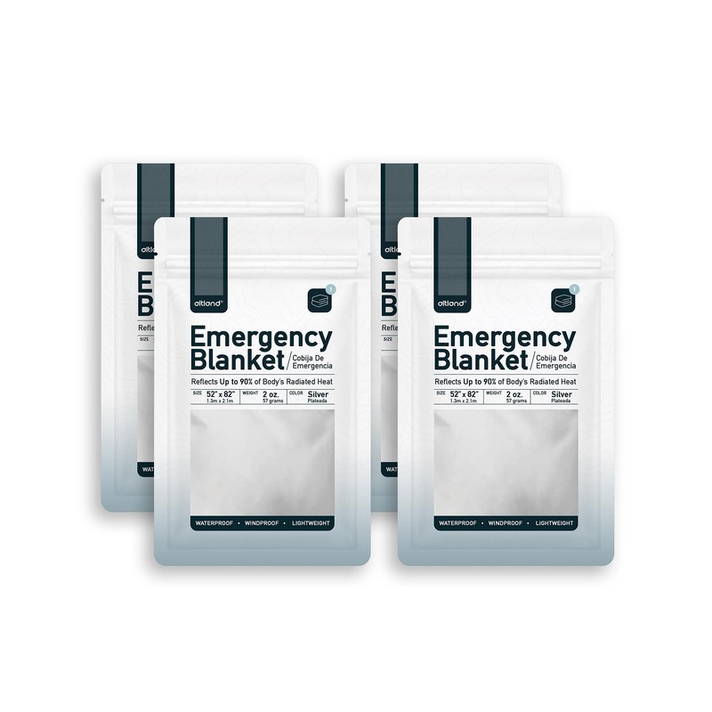 Altland 4 Pack of Emergency Blankets - Individually Packaged Silver Mylar Blankets