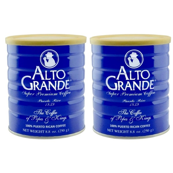 - Two 8.8 ounce cans of Alto Grande Super Premium Puerto Rican Coffee (17.6 ounces total)