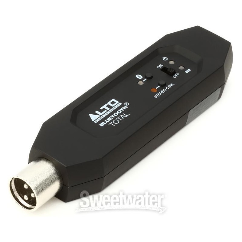 With the Alto Professional Bluetooth Total MKII Bluetooth Audio Adapter, it's easier than ever to connect your favorite Bluetooth devices to a mixer, speaker, or any XLR input. Its simple construction makes for a genuine plug-and-play experience — just plug the Total MKII into an XLR input, pair your device, and hit play. Need an adapter that can handle marathon gigs and late nights? The Total MKII is your secret weapon, with a built-in battery that runs for over six hours on a single charge. Sweetwater sound engineers know the value a high-quality Bluetooth adapter adds to your performance. Purchase the Alto Bluetooth Total MKII Bluetooth Audio Adapter and instantly inject some welcome versatility into your live setup!Alto Professional Bluetooth Total MKII Bluetooth Audio Adapter Features: