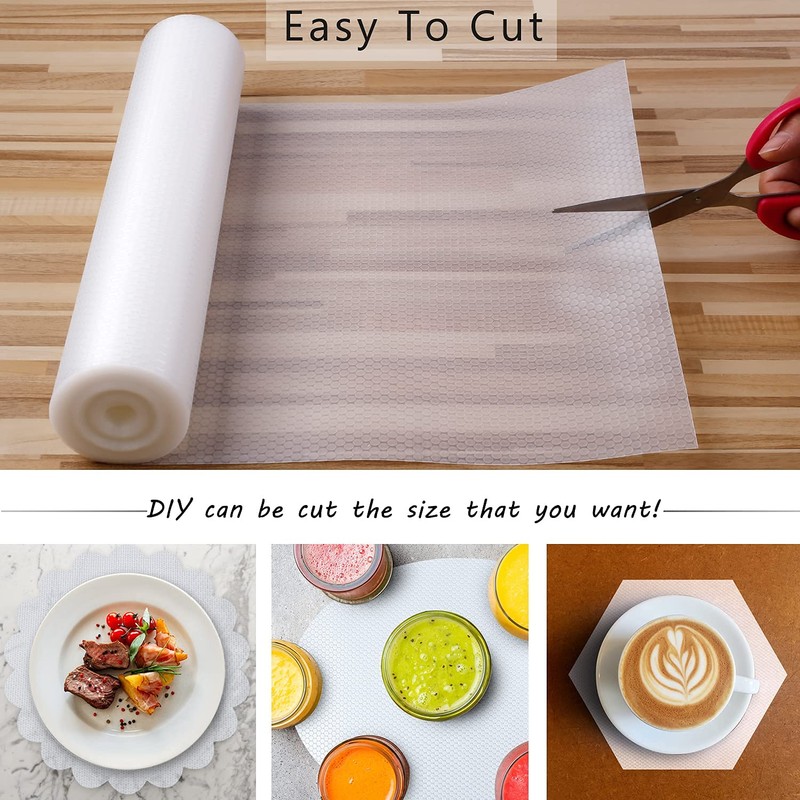 - 【EASY TO INSTALL】Our shelf paper & drawer liner adopt the most popular pre-cut size, which is easy to install. For any size and shape you need, just trim the liner with scissors. Just put the liner in the drawer or cabinet and trim off the excess material.