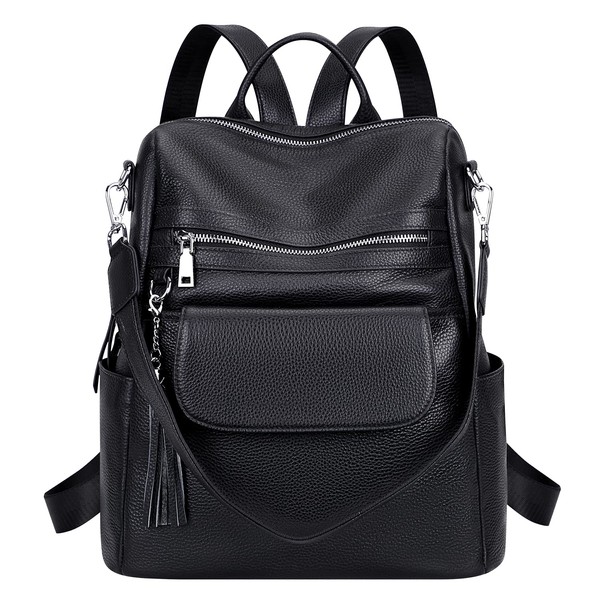 ALTOSY Genuine Leather Backpack Purse for Women Large Convertible Shoulder bag Ladies Crossdody Bag with Tassel(S115 Black)