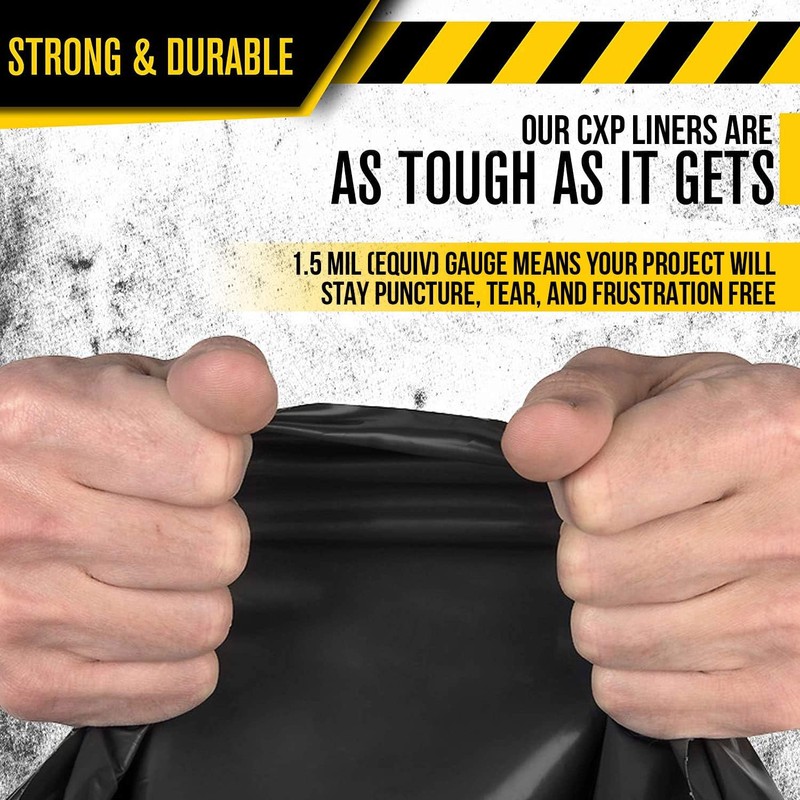 - Frustration Free - Our 40-45 gallon garbage bags can hold heavy weight. Suitable for puncture free trash; 1.5 Mil (eq) thick plastic means your project will stay frustration free.