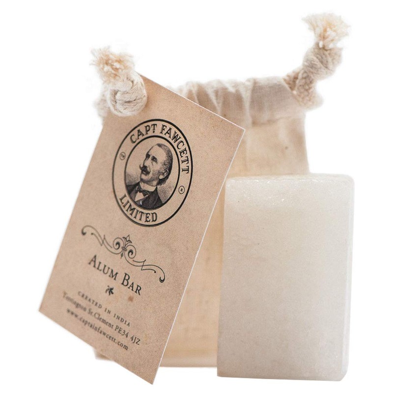 Captain Fawcett's Limited Alum Bar - The Alum Stone continues an ancient tradition. Since the beginning of shaving, well-known barbecues use the mineral stone to take advantage of its calming and healing effect. Used as a blood-silent or aftershave, the short moistened alum stone with cold water also helps against the worried shaving burn.