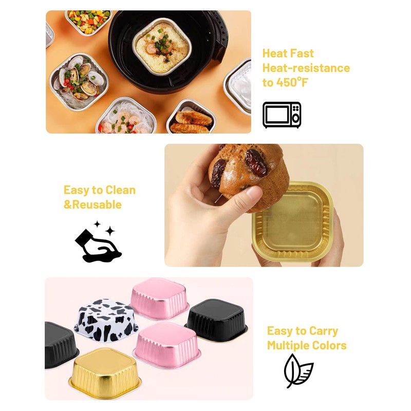 - Easy to use without a baking tray:These mini baking trays are made of thick food-grade aluminium foil, this aluminium baking cups conduct heat well and can shorten baking time. The muffin tin can be grilled over the fire, perfect for making crème brûlée, chargrilled cheese and more