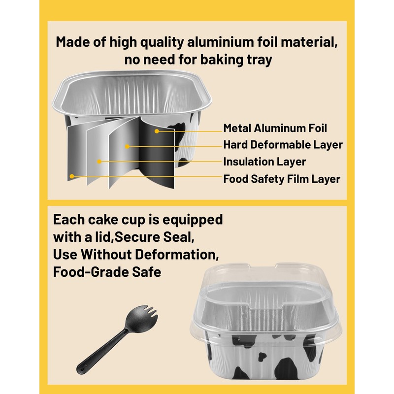 Aluminium Foil Square Brownie Baking Cups, Mini Loaf Pans With Lids 50 Pack, Disposable Ramekins Baking Pan, Cupcake Container for Brownie Bread Cheesecake-Cowprint