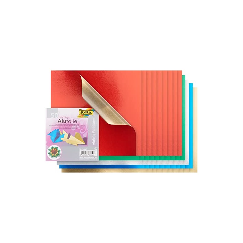 50 sheets of folding paper made of aluminium craft foil, assorted colours.