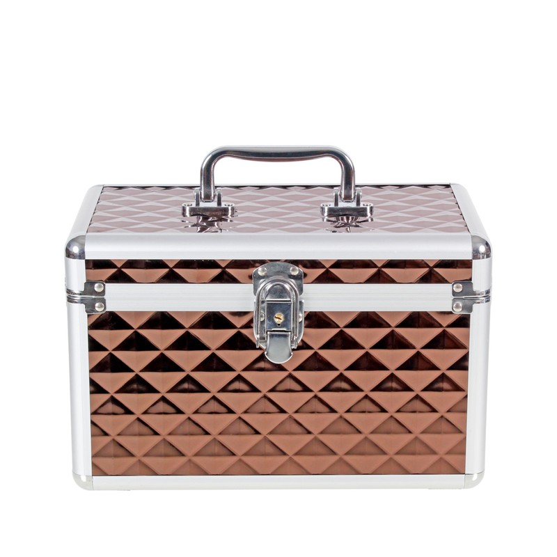 Aluminium Hard Make Up Travel Storage Box Cosmetic Beauty Vanity Case Organiser (Brown)