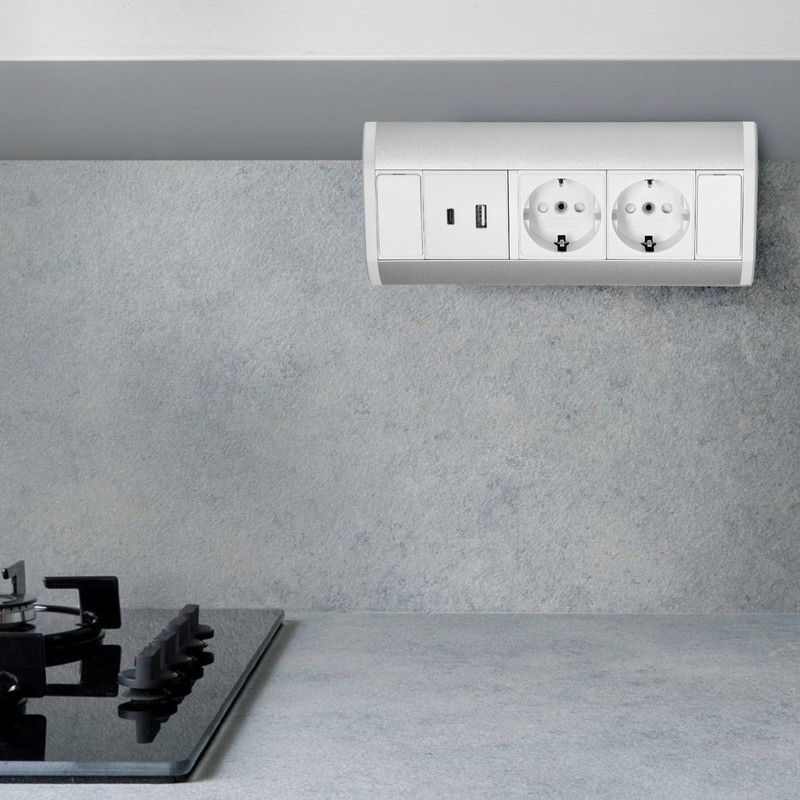 - Aluminium Power Strip 2-Way I USB-A USB-C I White/Silver