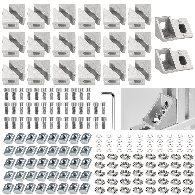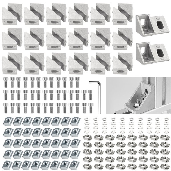 - Box contents: set of 20 x angle + 40 x lens screws + 40 x hammer nuts + 20 x T-nuts for 20 x 20.20 x 20 profiles. Size: 20 x 20 x 17 mm, thickness: 3 mm; 2 holes, elliptical hole: approx. 9mm x 6mm