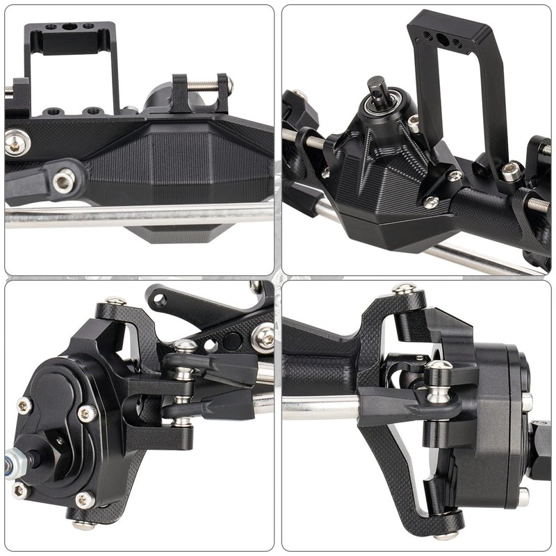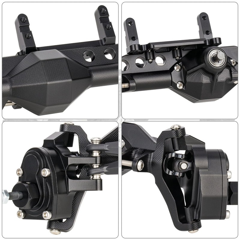 Aluminum 4WS Offset Portal Axle Set with Servo Mount for 1/10 4 Wheel Steering LCG Chassis Comp Rigs Capra H10 Optic (Front Rear Black)