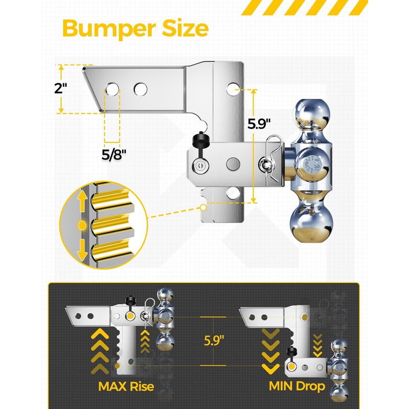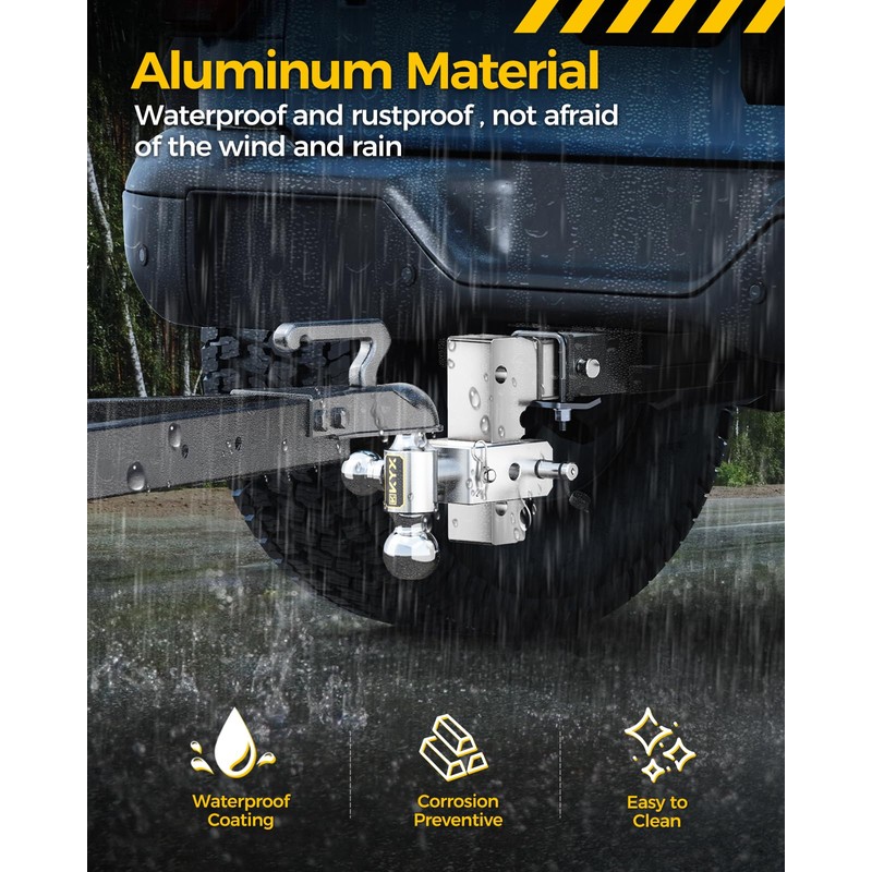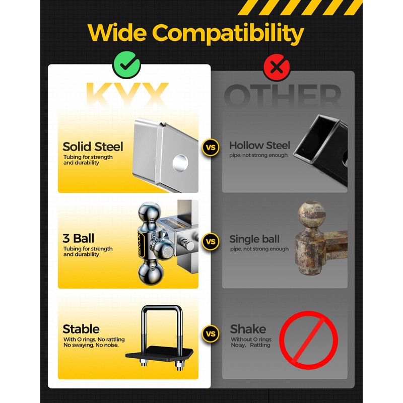- 【Multi-size adjustable design】KYX trailer hitch Supports three ball size (1-7/8 & 2&2-5/16) and height adjustment (6"" lifting range) for different trailer needs.