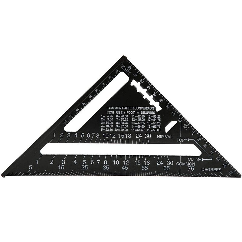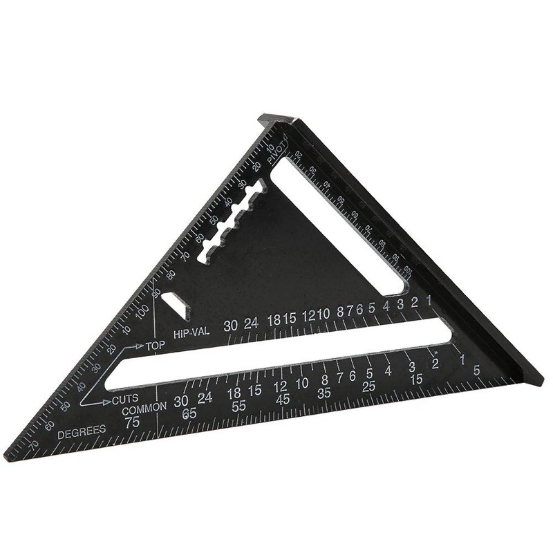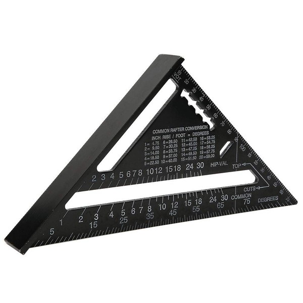 Aluminum Alloy Angle Protractor, 7 Inch Metric Aluminum Alloy Black Oxidation Roofing Triangle Angle Protractor Speed Square Rafter Ruler Meter (Metric)