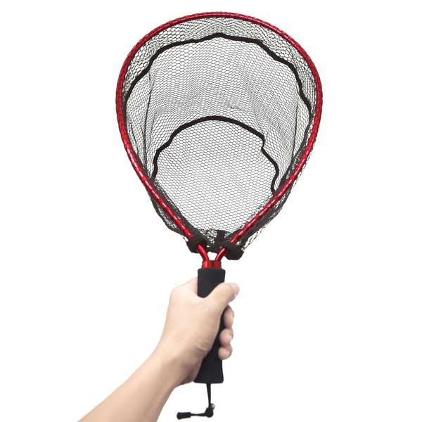 Aluminum Alloy & Soft Rubber Mesh Kayak Fishing Net - Trout & Catch and Release Net (Red)