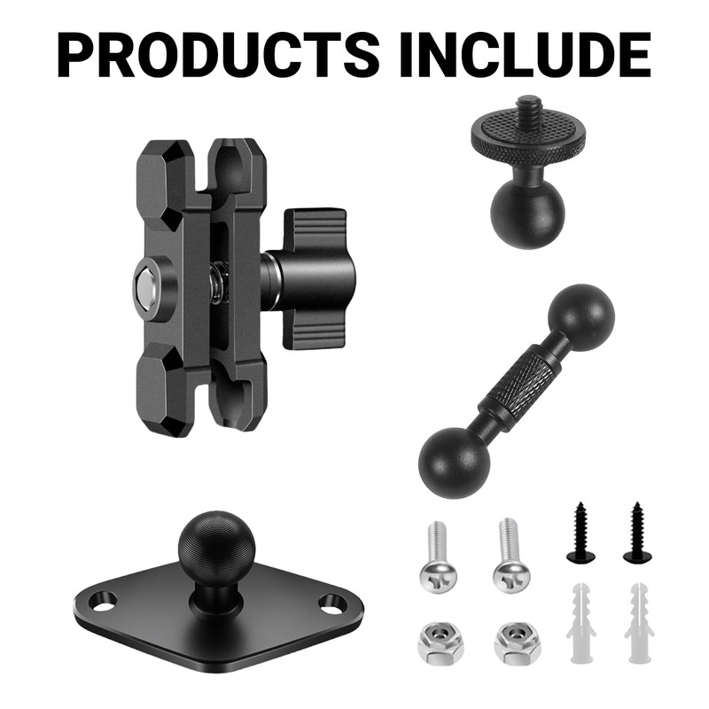 - 【Package includes】1x 17mm ball adapter,17mm Double Ball Adapter, 1x dual-socket extension arm, 1x AMPS diamond plate