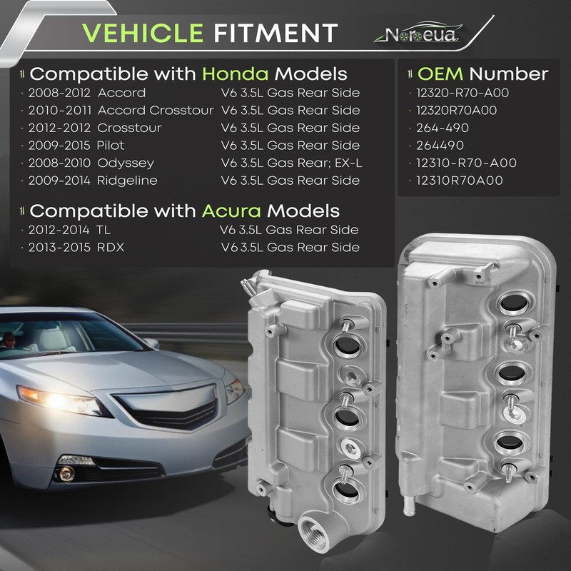 • Front Cylinder Engine Valve Cover: Compatible with 2010-2012 Honda Crosstour 3.5L V6, 2008-2012 Honda Accord 3.5L V6, 2012-2014 Acura TL 3.5L V6, and 2013-2015 Acura RDX 3.5L V6.