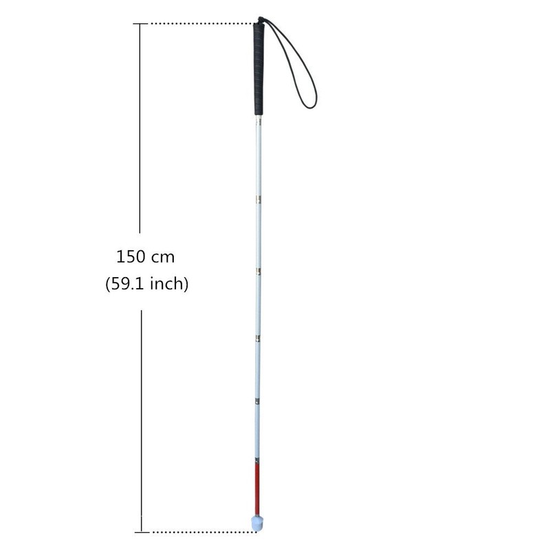 Aluminum Mobility Folding White Cane for Vision Impaired and Blind People (folds down 7 sections) (Black Handle, 150cm (59.1 inch))