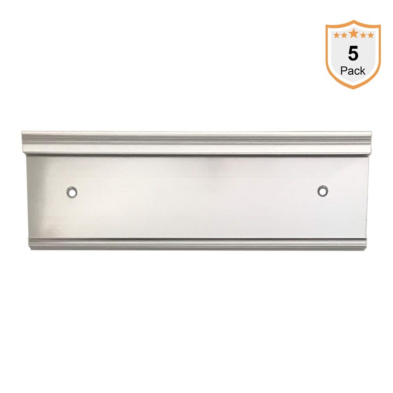 Aluminum Nameplate Holder, New, Modern Design, 8" x 2" (Silver, 5-Pack)