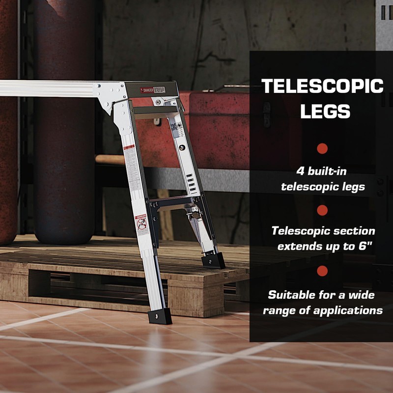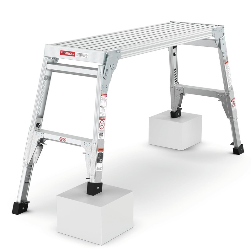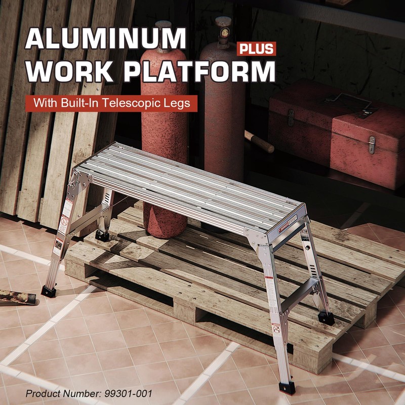 Aluminum Work Platform Large Size Step Stool Folding Portable Work Bench 40" Width Telescopic Feet 22" -27.5" Height Adjustable