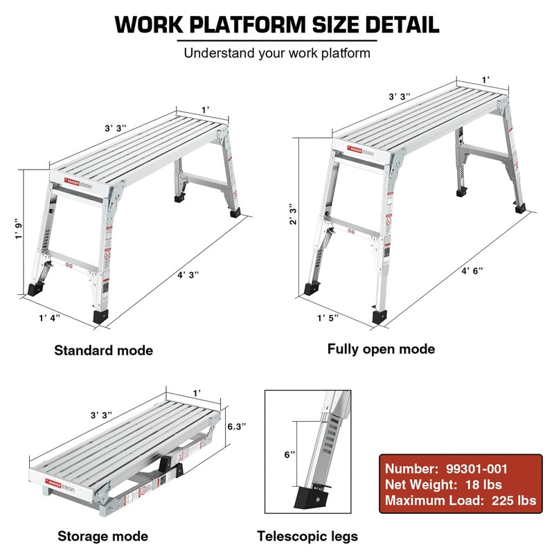 - Enhanced Safety: The platform is equipped with thickened aluminum profiles and non-slip foot pads, providing a secure and stable working surface, even in challenging conditions.