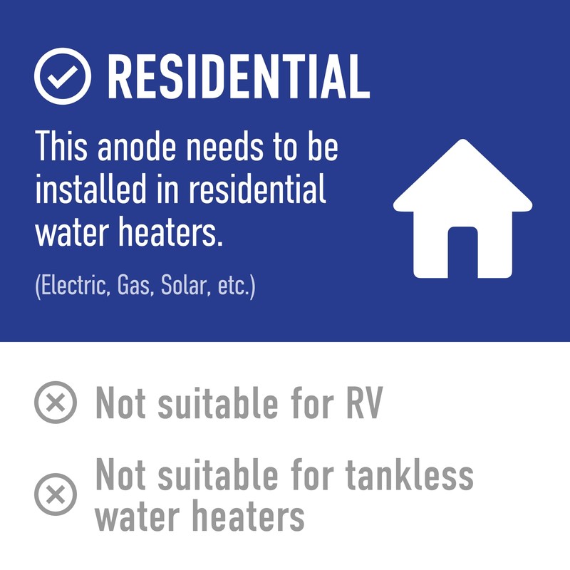 - Replaces water heater tank’s existing magnesium anode rod (hex head only).