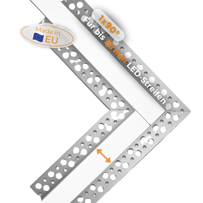 - Easy to install – Our high-quality 90° corner aluminium profile for LED strips is compatible with the LED drywall profile Kizar and can be easily installed and adjusted into plasterboard and masonry.