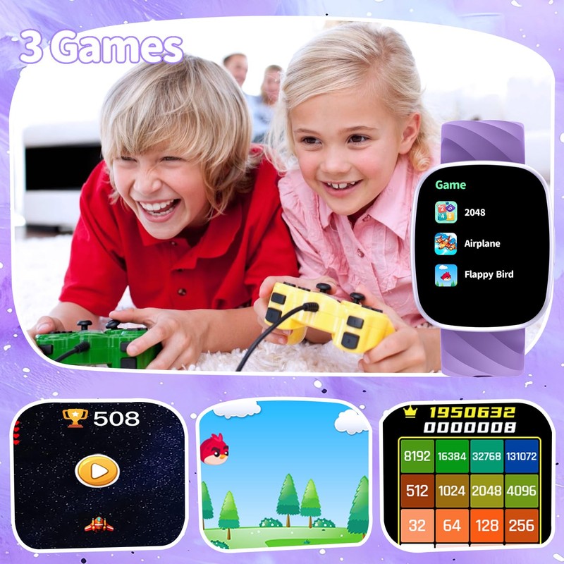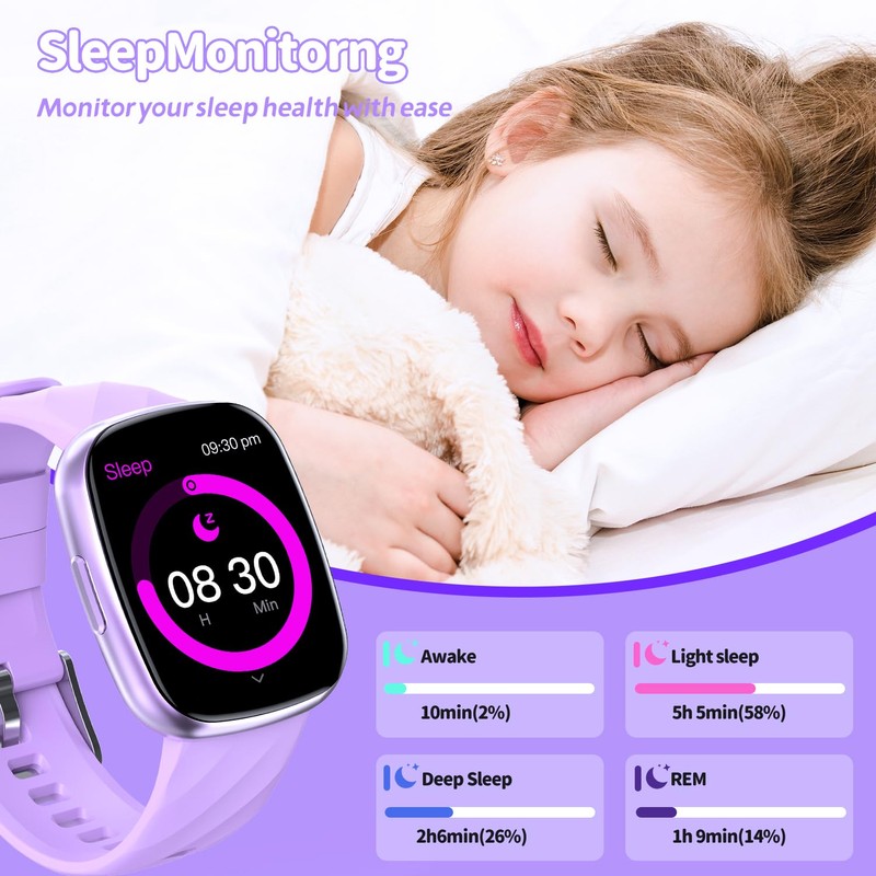 Alutoria Smartwatch Children, Children's Phone Watch Sport Fitness for Children, IP68 Waterproof, 100+ Sports Modes, Notifications Messages, Fitness Tracker for Boys Girls, Light Purple