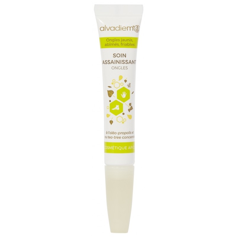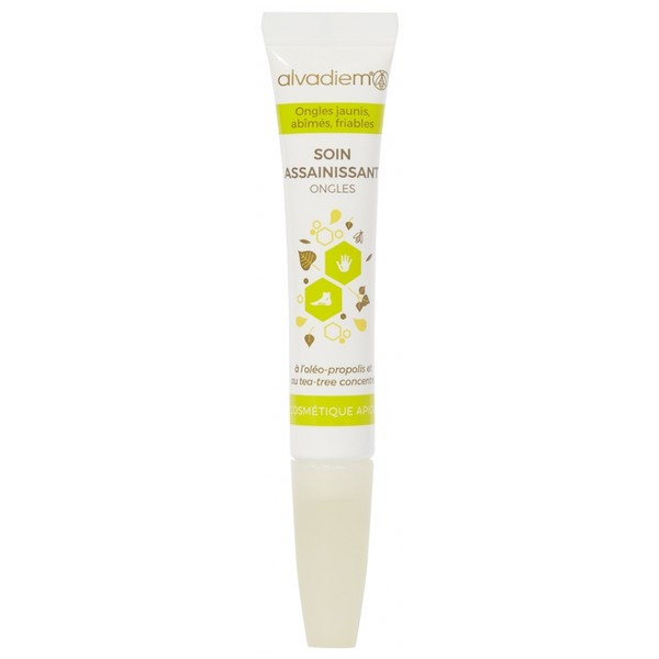 Alvadiem Yellowed, Damaged, Weakened Nails by Mycosis Sanitizing Care 10ml is an active care with Black Propolis and concentrated Terpineol, sanitizer from Tea-Tree, to protect and sanitize the nails.