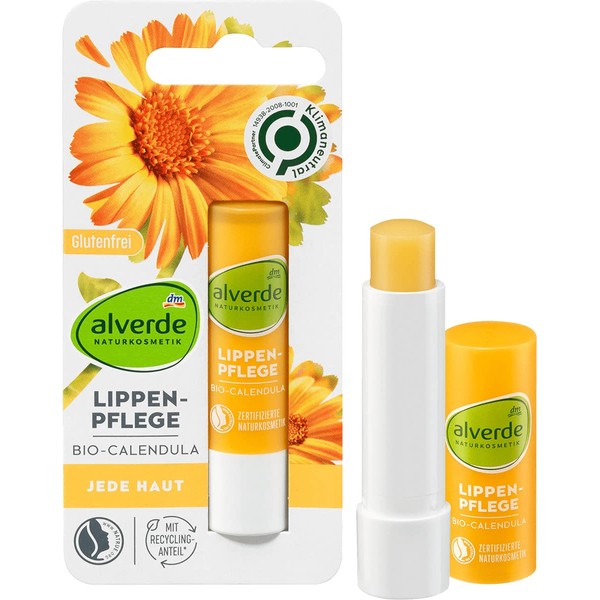 - The alverde lip balm with organic calendula reliably protects your lips from drying out. If the lips are already damaged, they are immediately protected and calmed at the same time. In addition, the certified natural cosmetics is suitable for any skin and is ClimatePartner, which is committed to climate neutrality. For intensely nourished and delicate lips.
