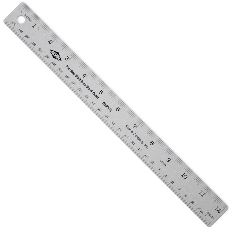 ALVIN R590-12 Inking Ruler with Nonskid Cork Back, Stainless Steel, 12" x 1-1/8" Size