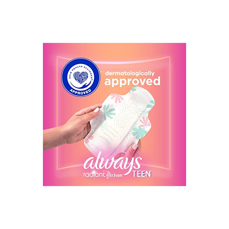 - Always Radiant Teen products feature soft FlexFoam material for all-day comfort and absorption