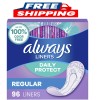 Always Daily Protect Panty Liners, Regular Length, Unscented, 96 Count