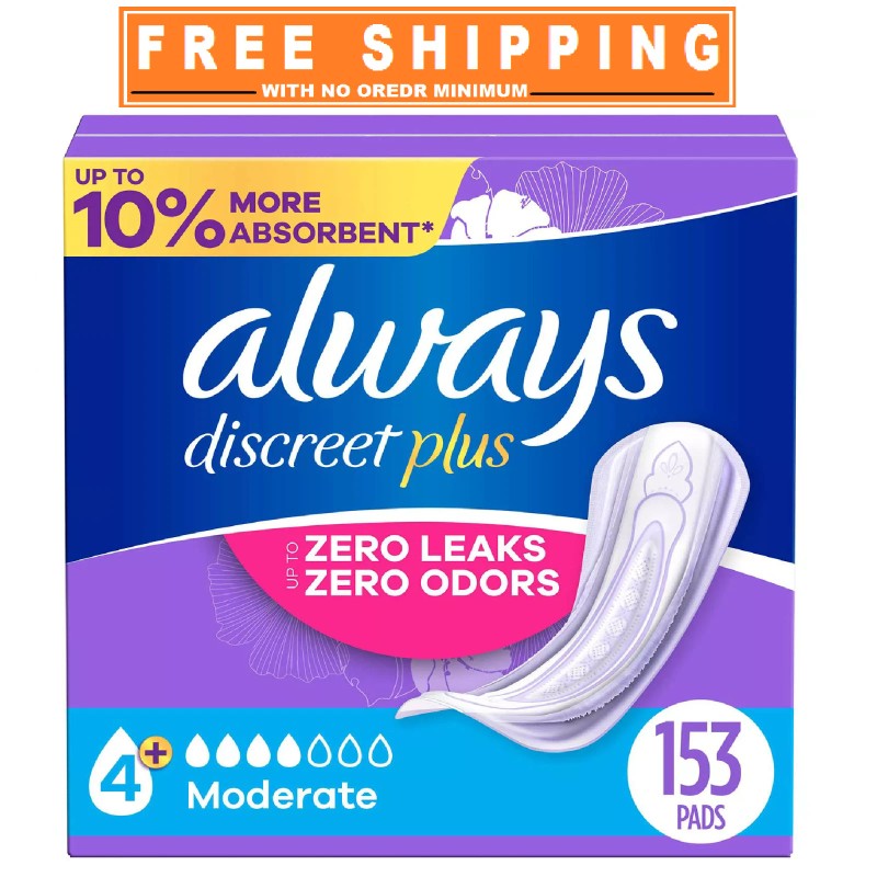 Always Discreet plus Incontinence Pads for Women Moderate 153 ct.