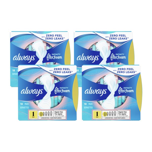 Always Infinity Pads, Size 1, Regular, 18 Count - Pack of 4 (72 Count Total)