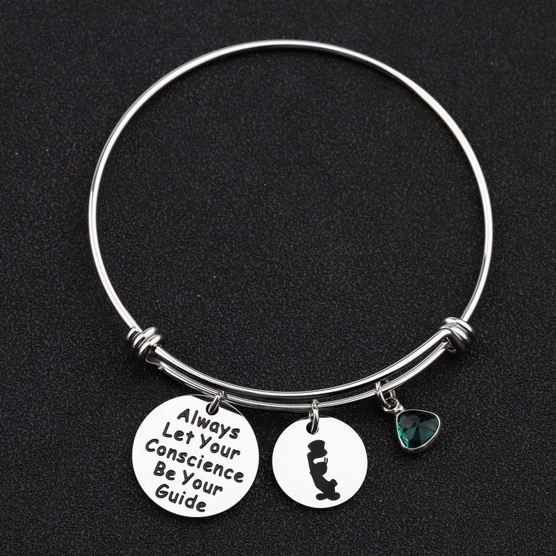 Always Let Your Conscience Be Your Guide Keychain Jiminy Cricket Quote Keychain Motivation Gift (Bracelet)
