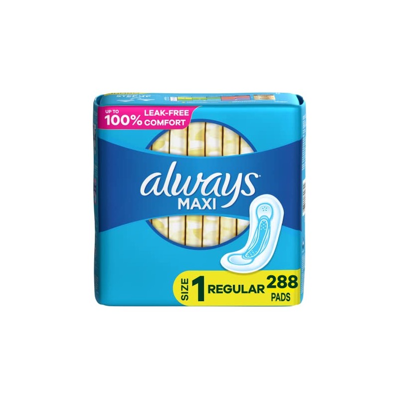 Always Maxi Feminine Pads For Women, Size 1 Regular Absorbency, Multipack, Without Wings, Unscented, 48 Count X 6 Packs (288 Count Total)
