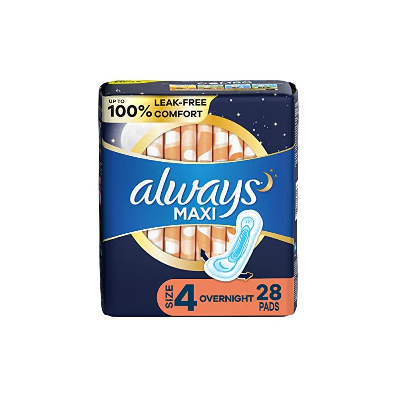 Always Maxi Unscented Pads without Wings, Overnight, 28 Count (Pack of 3)