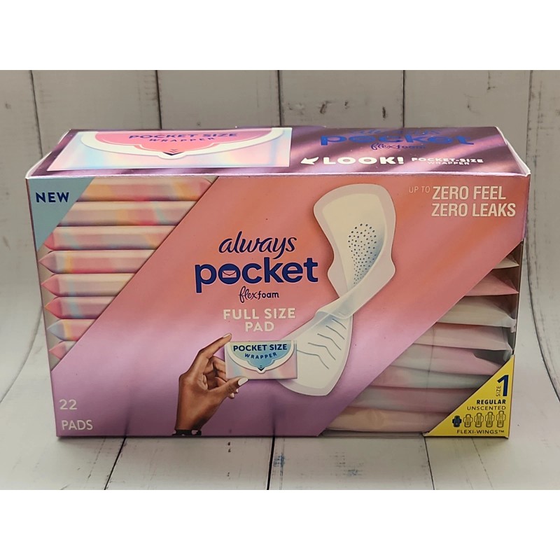 Always Pocket Feminine Pads with FlexFoam, Size 1 Regular, Unscented, 22 Pads.