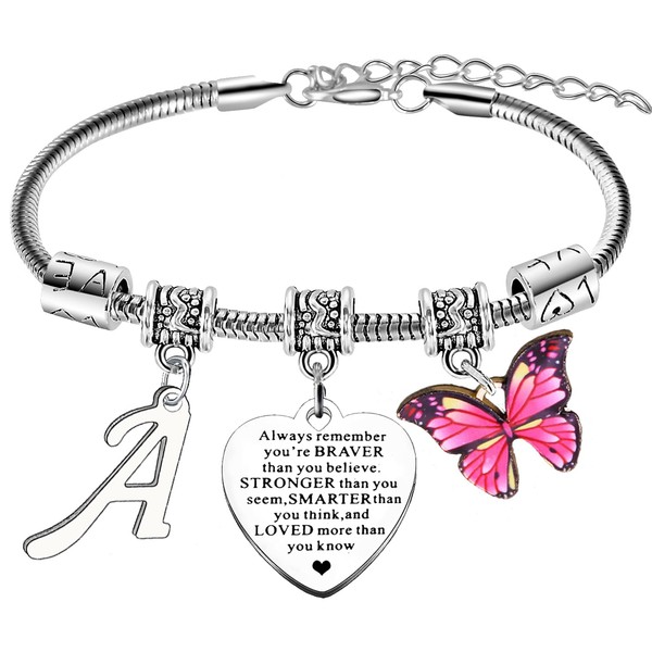- Butterfly Charm Bracelet Gifts for Women: The beautiful and cute butterfly initial bracelet can be usad as Birthday Gifts, Inspirational Gifts, Friendship Gifts, Motivational Gifts, Graduation Gifts,Encouragement Gifts, Christmas Gifts, Cheer Up Gifts, Positive Gifts, Spiritual gifts, Long Distance Relationship Gifts, Mother's Day Gifts, Anniversary Gifts, Valentine's Day Gifts, Thanksgiving Gifts, Wedding Gifts, Retirement Gifts, New Year's Gifts, Year-end Gifts, Family party Gifts etc. The pink butterfly charm motivational bracelet bring blessings and express your love, care and encouragement for family and friends.