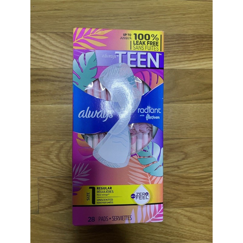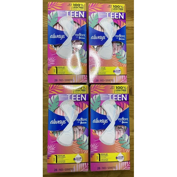 Always Teens Radiant Pads Unscented 4 Boxes Total 112 Pads Size 1