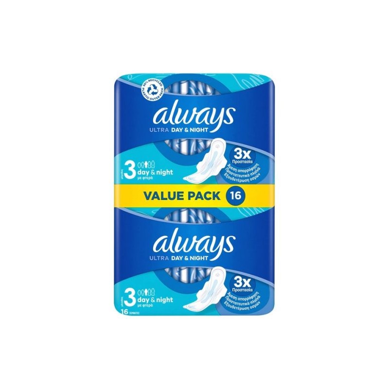 Always Ultra Day & Night Value Pack Size 3 Napkins with Wings 16pcs