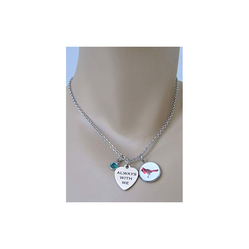 Always With Me Memorial Necklace With Cardinal Charm and Birthstone Bead, Memorial Jewelry