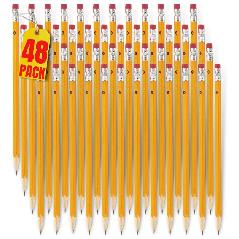 - Pack of 48 Yellow Pre-sharpened Bulk pencils, Pencils with Erasers,