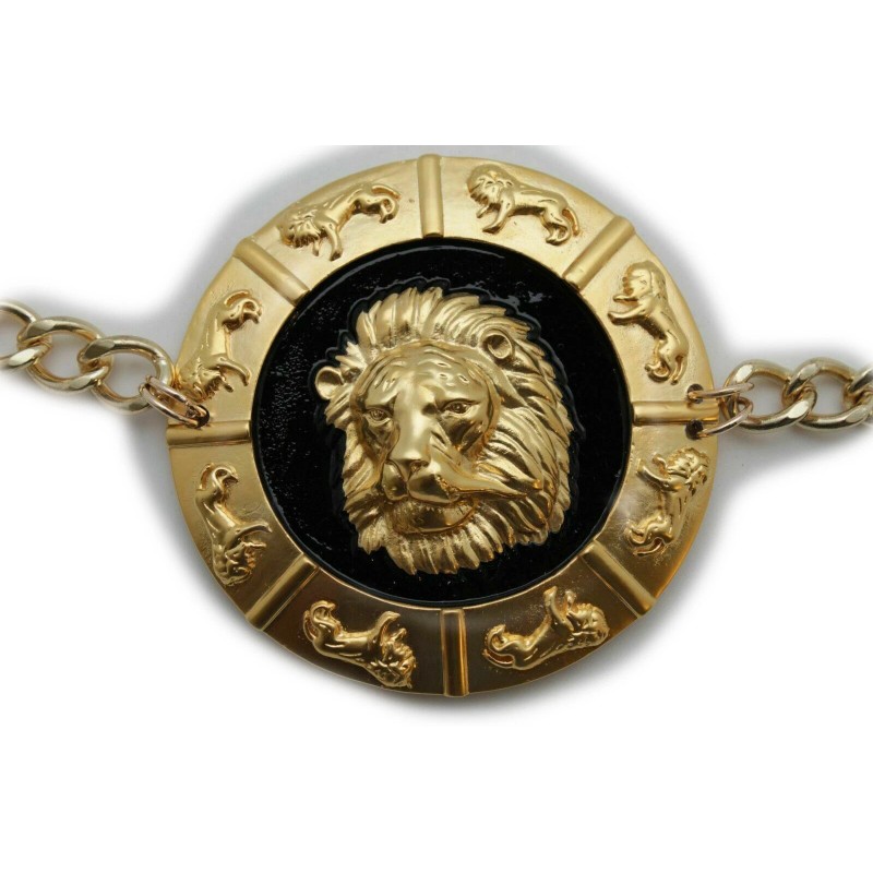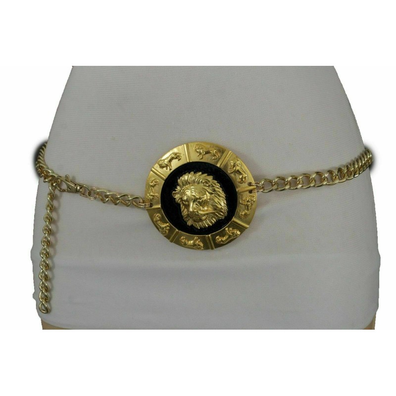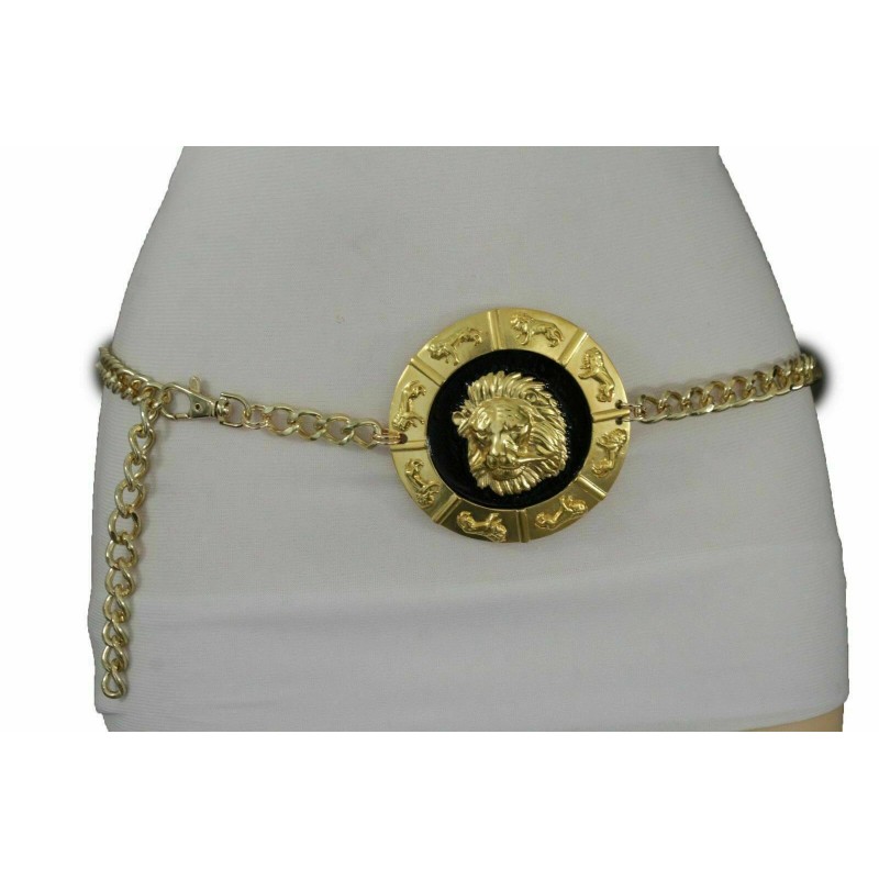 Alwaystyle4you Women Gold Metal Chain Links Waistband Belt Big Lion Buckle Designer Look M L XL
