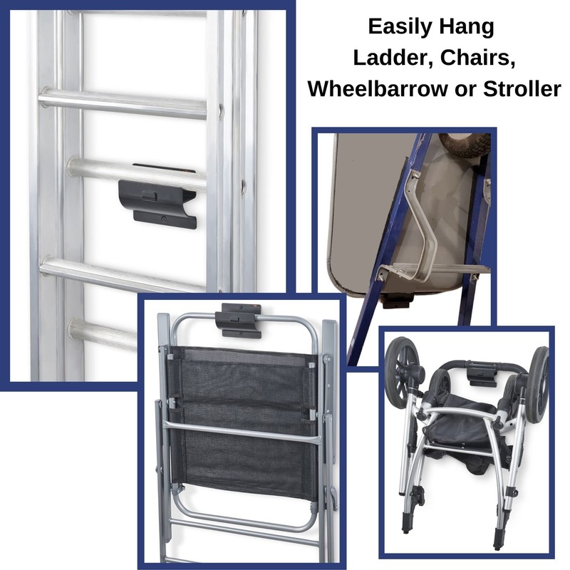 - ✔️ CLAIM BACK YOUR SPACE & GET RID OF MESS: This multipurpose ladder hanger hook is a storage solution tool that works for any space – the garden shed, garage wall, and more! It can store almost anything to help keep your space tidy and safe from trip hazards