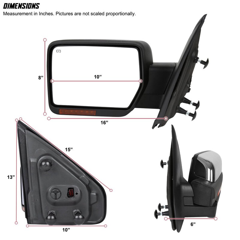 alxiang Left/Driver Side Mirror Power+Heated+ Signal+Puddle View Heavy Duty ABS Plastic/Glass for Ford for F150 2007-2014 1pc Bolt-on-Attachment Method Black Manual Fold-Fold Away Textured